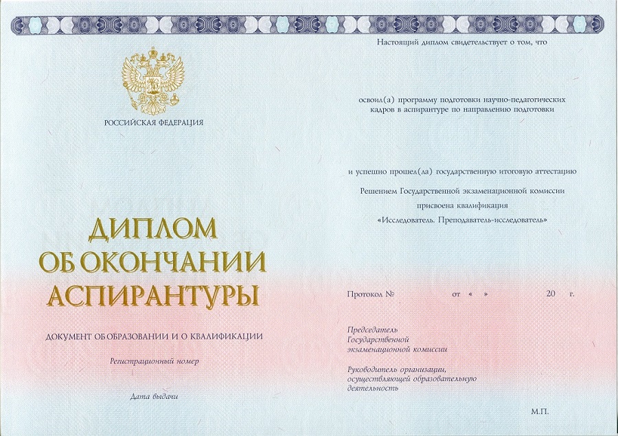 Дипломы аспирантуры заполняется профессиональными специалистами по установленным правилам и нормам министерства образования РФ. Документ на 100% соответствует всем требованиями Министерства Образования и Науки РФ.