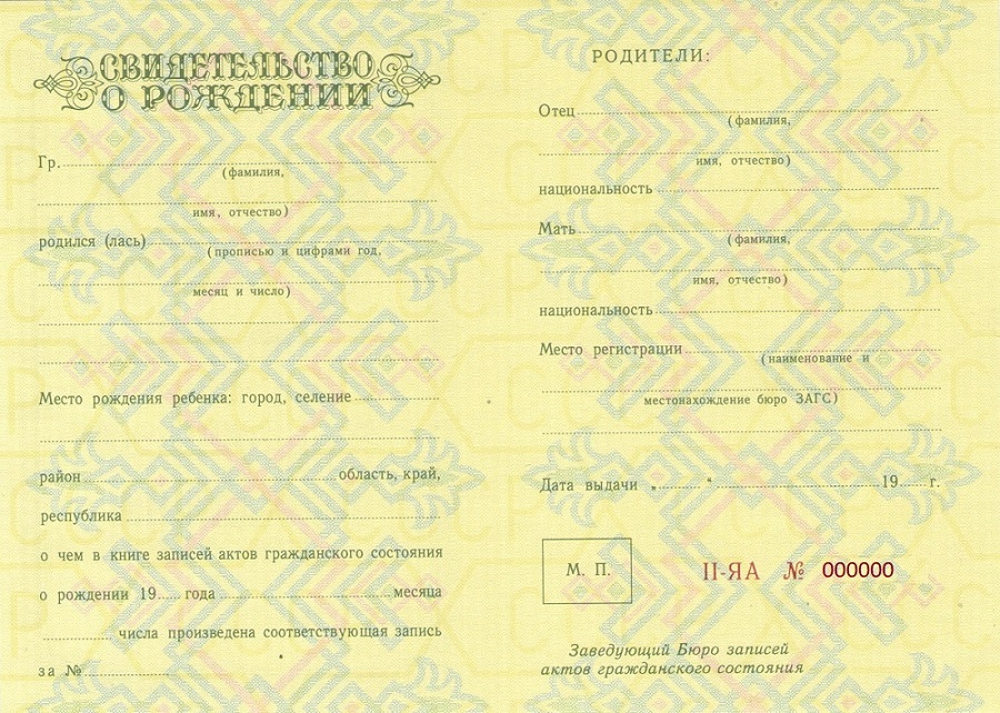 Образцы свидетельств о рождении СССР: